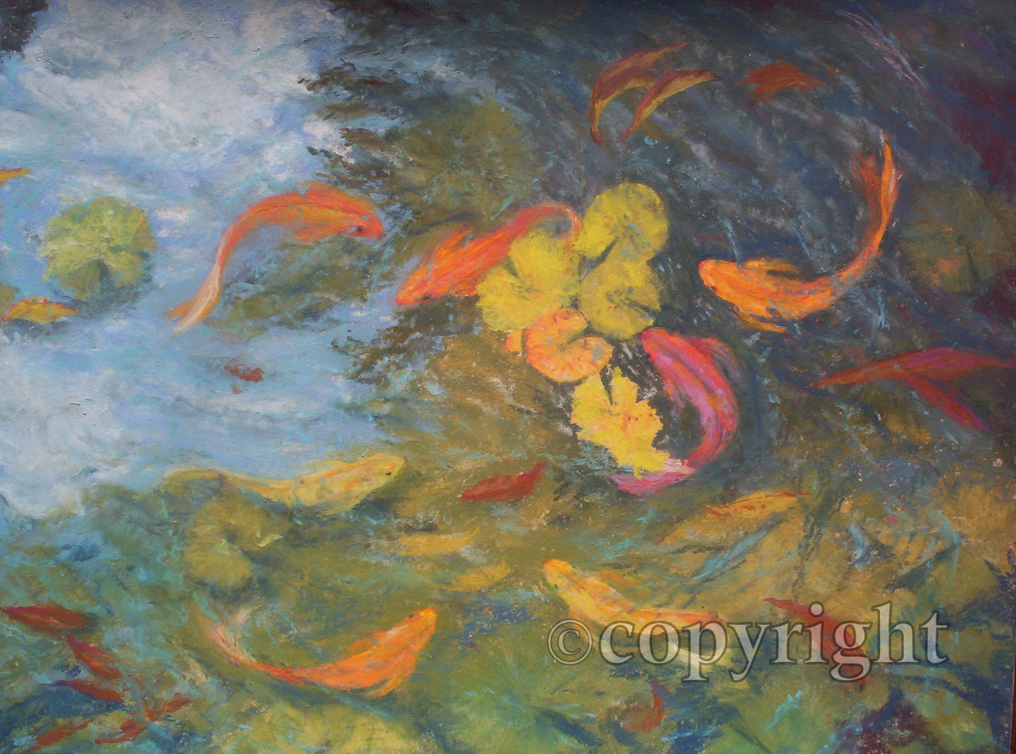 Sky reflections in koi pond, Kauai